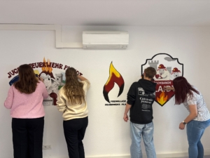 Drei Logos verschönern jetzt den Jugendraum der Bambini- und Jugendfeuerwehr Plaidt